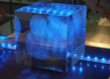 Реаниматор представляет собой трехслойную миниатюрную антенну, в каждом слое которой имеется своя матричная узорчатая решетка с различной толщиной линий. В прозрачном слое, который в процессе работы обращен к пользователю, толщина линий достигает 0,01 мкм. Поэтому в данном слое рассмотреть линии можно только в специальный, сверхмощный микроскоп, а невооруженным глазом он кажется просто прозрачным. Таким образом, наш реаниматор является пассивной широкополосной антенной (в нем нет батареек и других источников питания).